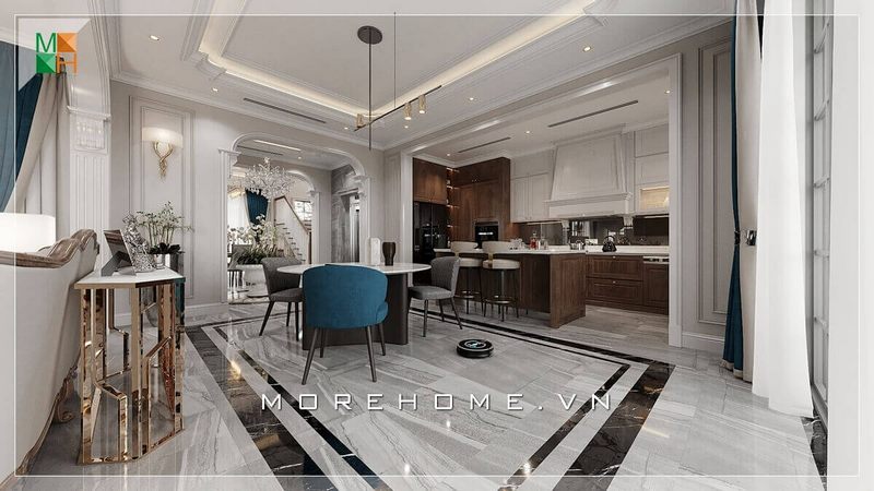 Bố trí nội thất cao cấp theo phong cách tân cổ điển được chọn lựa cho không gian nhà ở nhà phố cao cấp.