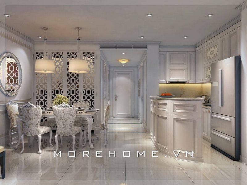 Thiết kế nội thất phòng bếp chung cư tân cổ điển, sang trọng và tiện nghi