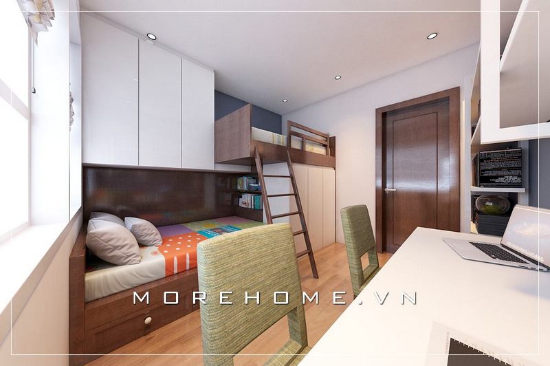 Nếu con bạn sở hữu một căn phòng ngủ nhỏ và đông thành viên thì đừng nên bỏ qua mẫu giường ngủ hiện đại đa năng này nhé