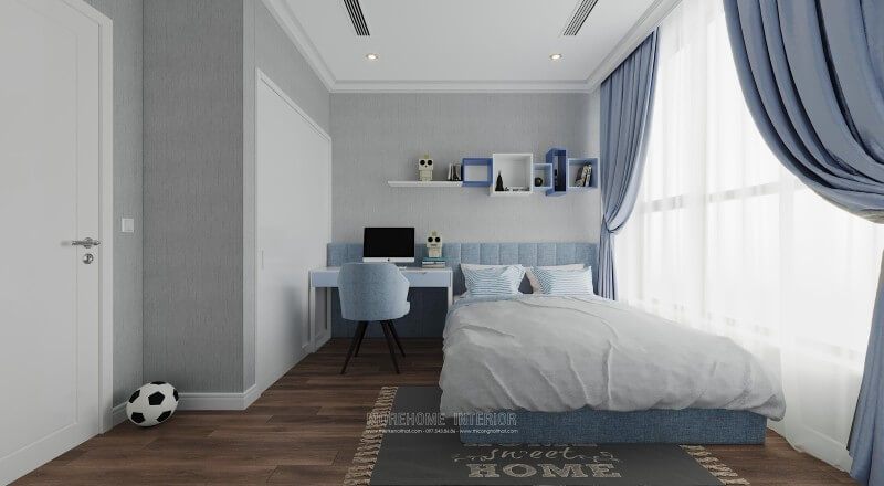 Thiết kế nội thất phòng ngủ con trai đẹp, gam màu xanh nhẹ nhàng được coi là điểm nhấn ấn tượng đẹp mắt