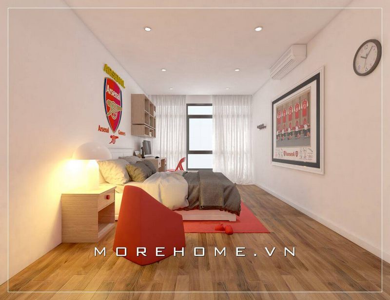Sắp đặt nội thất cho phòng ngủ của bé trai tại chung cư hiện đại để tạo ra không gian hợp lí giúp cho bé có thêm nhiều cơ hội để học tập và nghỉ ngơi.